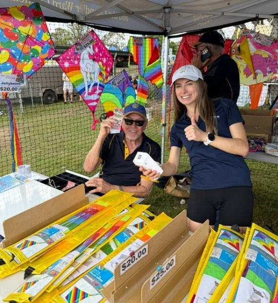 Rotary clubs of Carindale and Brisbane South East, in conjunction with the Brisbane City Council and Cr Lisa Atwood held the Brisbane Kite Festival on Sunday 24 August 2025 from 10am to 3pm. The event was held at Tingalpa Model Aero Club, in the Minnippi Parklands. The Rotary Clubs of Carindale and Brisbane South East spent many volunteer hours planning and running the event. There was a designated area for the public to fly their kites alongside professional kite flyers. For those who did not have a kite, a range was available to purchase. A fun day was had by the many 1000’s of adults and children running around the open parkland.