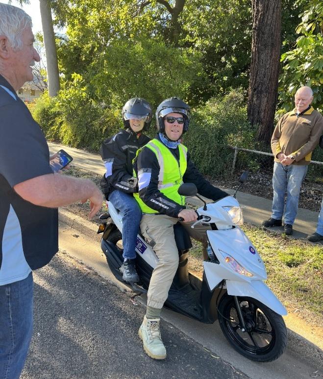 Our most recent collaboration was to join with the RSL Sub-Branch to provide dinner for the Scootaville charity ride. Participants in the ride are veterans raising money for Legacy. They came through St George before heading further west to the flood-affected towns of Cunnamulla, Thargomindah, Quilpie where community events are planned to lift local spirits. Before they left St George, your DG News Editor got to have a ride around St George on one of their “scooters”.